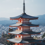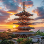 A tower that closely resembles Japan’s famous five-storied pagoda and a fantastic sunset